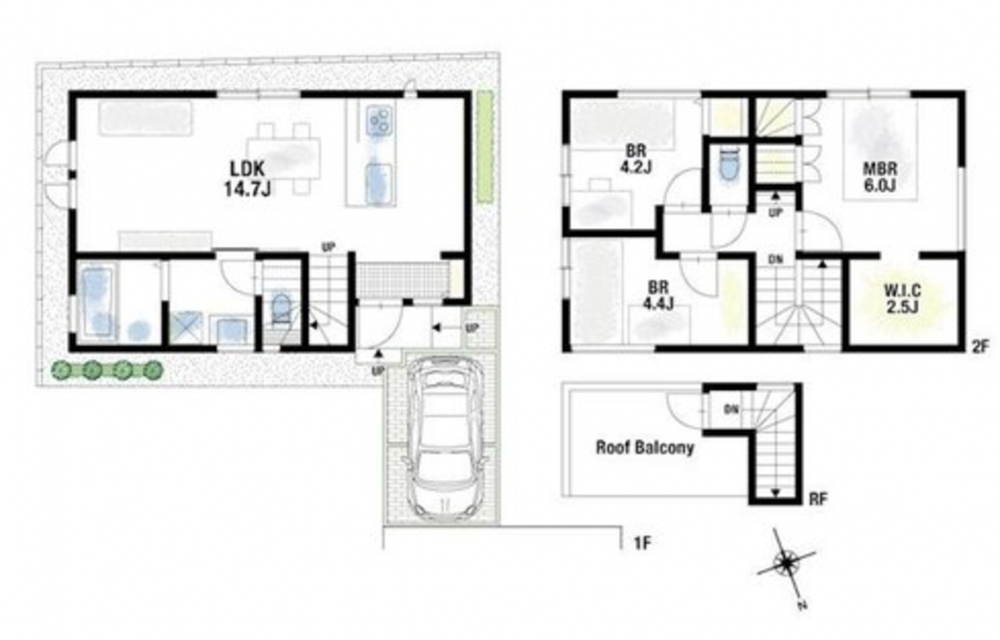 - システムキッチン、シャンプードレッサー、浴室乾燥機、ウォークインクローゼット、床暖房、屋上