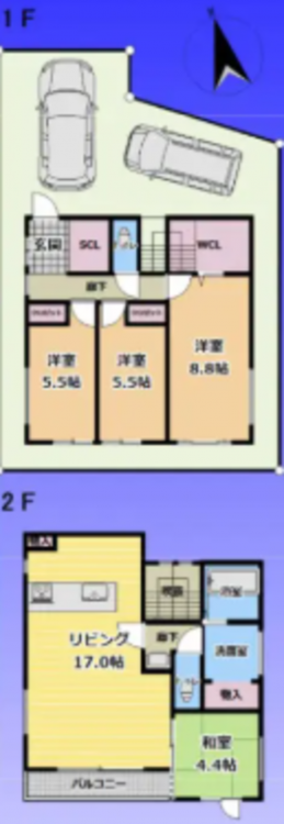 2台駐車可能なカースペースあり(車種による)