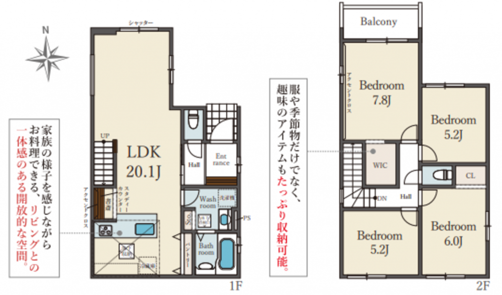 2階に洋室が4室ある、ファミリーにお勧めの間取りです。